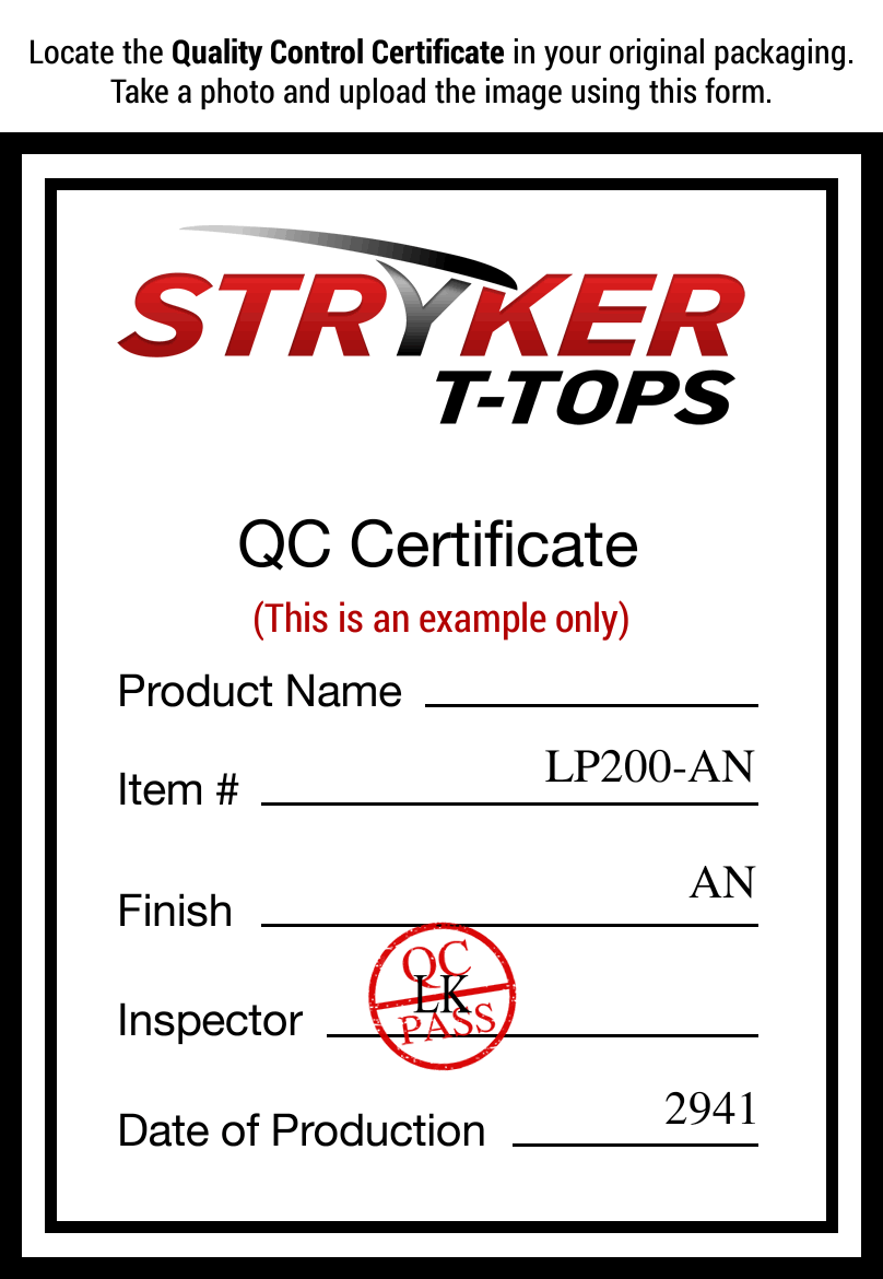 Prior to returning any products to Stryker T-Tops for a return or replacement, please fill out the submit the completed form below. If you are requesting to return multiple products, you must complete a form for each product separately. We will contact you via email within 1-3 business days with further instructions.